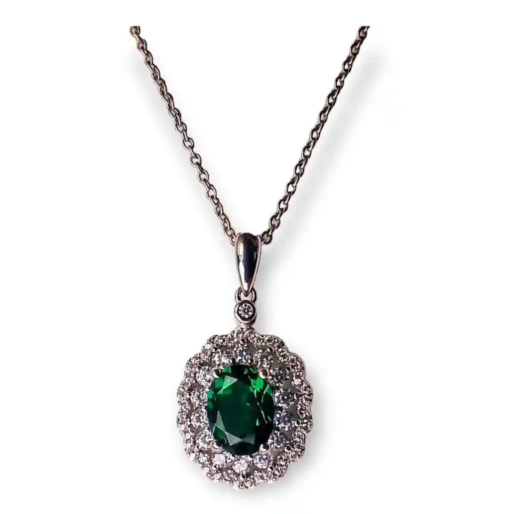 Hermosos y elegante collar de plata fina ley con dije colgante con impactante esmeralda creada en laboratorio de color intenso y profundo; enmarcado por leucozafiros brillantes de alta calidad. Combinación sin igual de gemas que aseguraran lo único de la pieza y generaran un brillo inigualable. Incrustada en plata fina ley S925 de primera calidad. Tipo de metales: todas las piezas de metal están hechas de plata de ley 925, sin níquel, sin plomo e hipoalergénicas. Es una opción saludable para orejas sensibles. Joyería fina, con delicadas terminaciones y excelente calidad. Largo de la cadena: 40 cm+ 5 cm de extensión Peso de la cadena: 1.4 gramos. Color de las esmeraldas: VVS1 Peso del colgante: Aprox. 1,3 gramos. Cuando hablamos de gemas sintéticas, nos referimos a piedras que ha fabricado el hombre en un laboratorio reproduciendo las mismas condiciones que la madre naturaleza, de tal manera que una gema sintética tiene el mismo color, la misma composición química, la misma dureza, el mismo índice de refracción y densidad que su equivalente natural y características ópticas y físicas similares. Al ser producida en laboratorio, es muy fácil de rastrear su fuente, y muy improbable que provenga de lugares en conflicto o producto de la explotación humana. Esto forma parte del mercado ético de las gemas, conocidas también como "gemas sin sangre". (Se envia en bella presentacion para regalo) Ofrecemos joyas únicas que cuentan historias especiales. Contamos con una amplia variedad de joyas de metales preciosos, gemas y arte adaptados a los gustos de nuestros clientes. Además, disponemos de auténticas piedras preciosas de la mejor calidad. Descubre nuestros productos en plata, oro, oro rosa y acero quirúrgico 316L, perfectos para cualquier ocasión. Encuentra el regalo u obsequio perfecto para cumpleaños, aniversarios, San Valentín, día de las madres, día del padre, graduaciones, viajeros, bodas y más. ¡Regalos originales y obsequios para todo tipo de fanáticos y amantes de la vida! Una joya o accesorio es el obsequio perfecto pues siempre añade un toque de elegancia a tu atuendo y look.