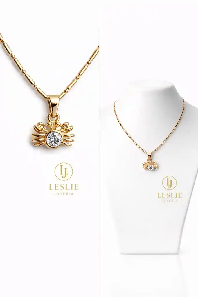 Collar con hermoso dije de cangrejo cristal laminado en oro color rose mide 45cm.