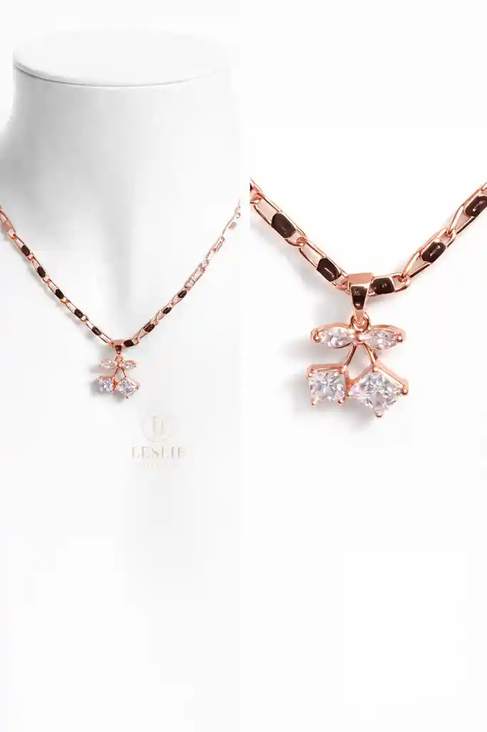 Collar con dije de cerezas cristales laminado en oro color rose de 18k mide 45cm.