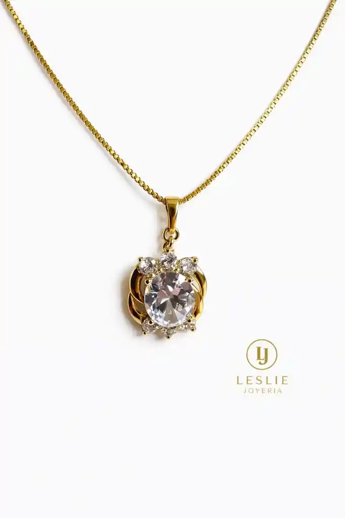 Collar elegante con dije de cristal y micro circones laminado en oro de 18k mide 55cm.