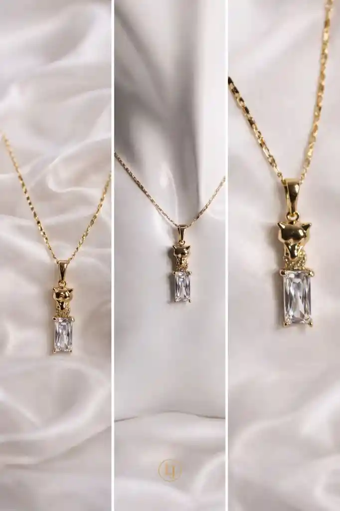 Collar con hermoso diseño cristal laminado en oro 14k, mide 50cm.