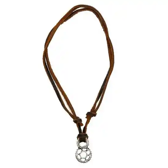 Collar Vintage Con Diseño de Engranaje Envejecido. Colgante de Cuero Color Café Ajustable Para Adaptar a la Altura Deseada. 35 cm (Dije)