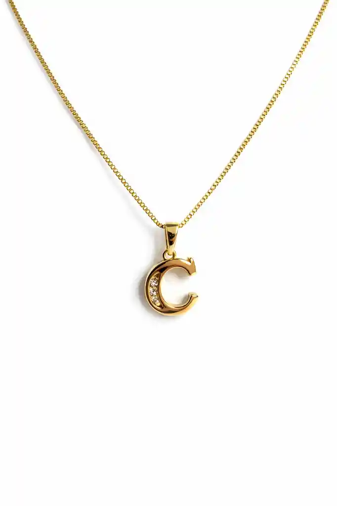 Collar con inicial con micro circones laminado en oro de 14k mide 50 cm y el dije 2 cm.