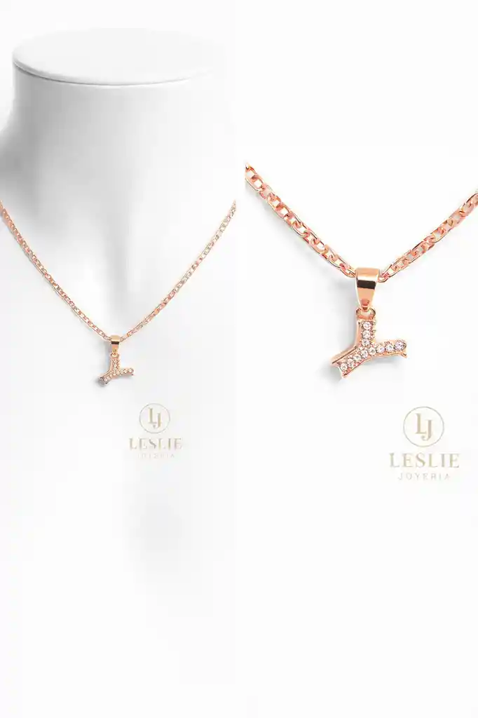 Collar con inicial Y laminado en oro color rose de 18k mide 45cm y dije 1cm.
