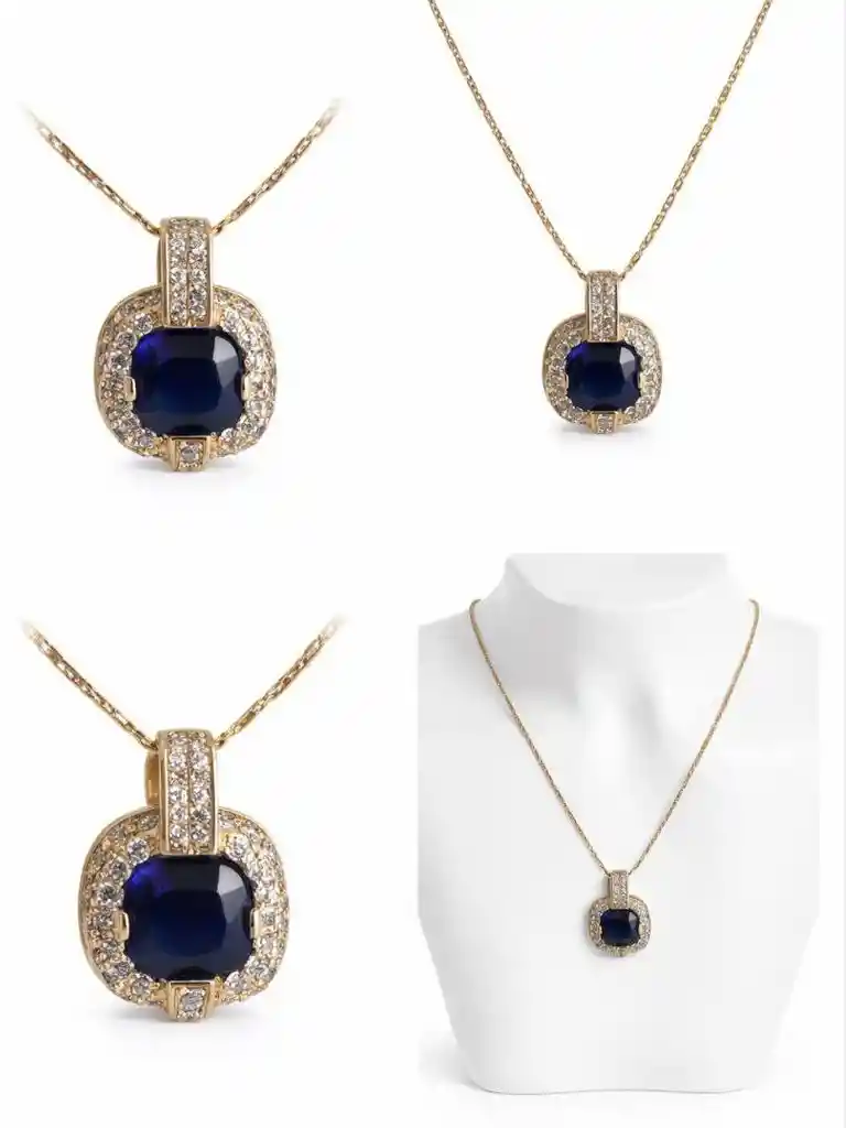 Collar con dije de piedra azul y micro circones laminado en oro 14k mide 50cm