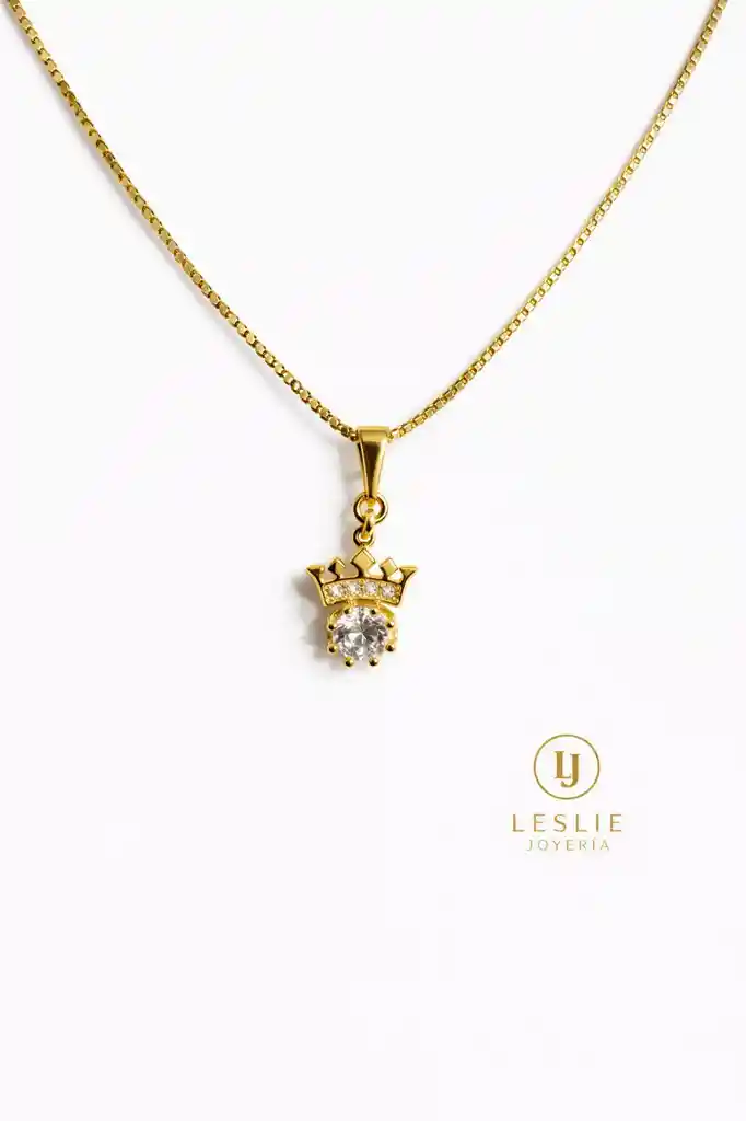 Collar con dije de punto de luz y coronita con cristal y micro circones laminado en oro de 18k mide 45cm.