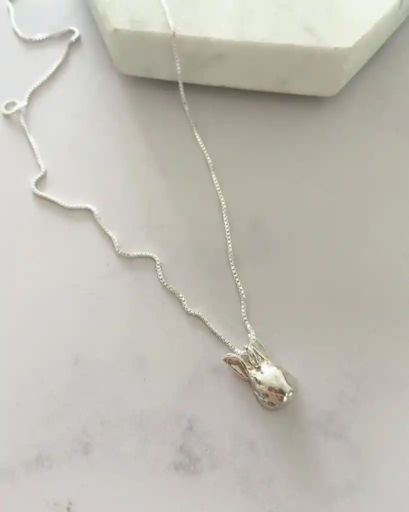 Collar de Plata con dije cara de Conejo de 1 cm Cadena veneciana de 45 cm de largo ( cadena lisa )
