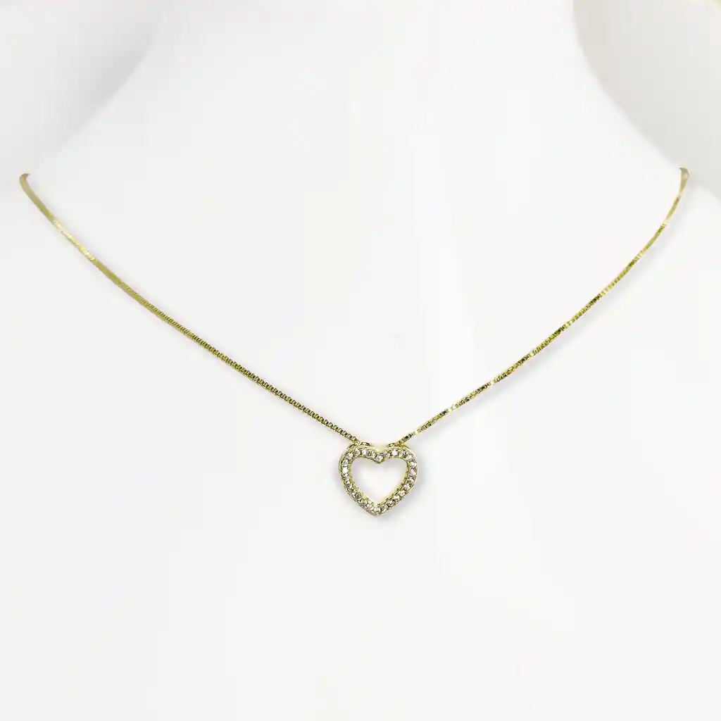 Collar Corazón Circón Enchapado Oro 18 K. Fabricado en Bronce y Enchapado en Oro 18 K. El material es hipoalergénico, calidad garantizada y libre de níquel.