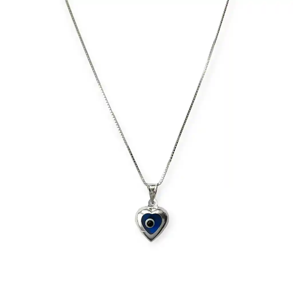 Descubre la elegancia del Collar Corazón Ojo Turco en Cristal y Plata Fina 925. Este exquisito diseño combina la delicadeza del cristal con la protección del Ojo Turco, todo en un marco de Plata Fina 925. Perfecto para añadir un toque de estilo y significado a tu atuendo diario. Medidas: Largo total collar 45cm. Largo total colgante incluyendo el valier 16mm. Tamaño corazón 10x9mm. Peso 2,1 gr.