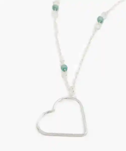 Plateado Corto Con Mostacillas Verdes Colgante de Corazón.