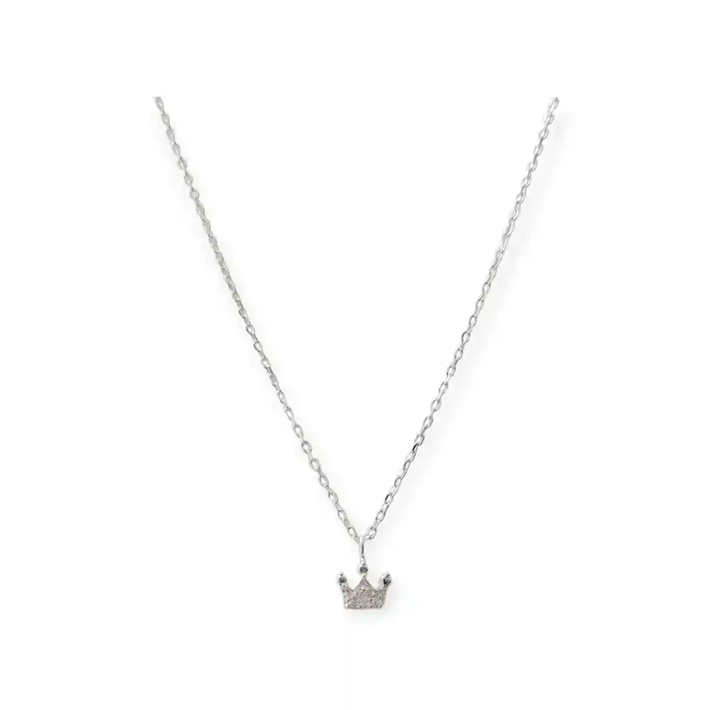 Corona tu estilo con nuestro elegante Collar Corona. Con un diseño encantador y detalles de circón que añaden un brillo sutil, este collar de Plata Fina 925 es la elección perfecta para destacar tu belleza con un toque de distinción. Haz que cada día sea especial con esta pieza única que refleja tu sofisticación. ¡Hazlo tuyo y brilla con confianza! Medidas: Largo collar 43cm más 3cm de cadena de alargue. Tamaño colgante incluyendo la argolla 8mm. Tamaño corona 6mm ancho y 5mm largo. Peso 1,4 gr.