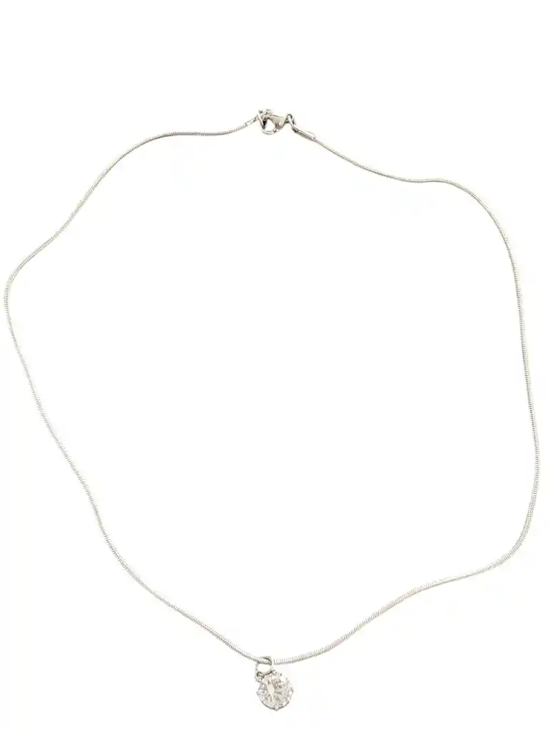 Collar de cadena con baño de plata, diseñado con un colgante grande de forma cuadrada en acabado transparente y brillante que capta la luz de manera elegante. Una pieza moderna y sofisticada que aporta presencia y luminosidad, ideal para realzar looks minimalistas o elevar atuendos más formales con un acento contemporáneo.