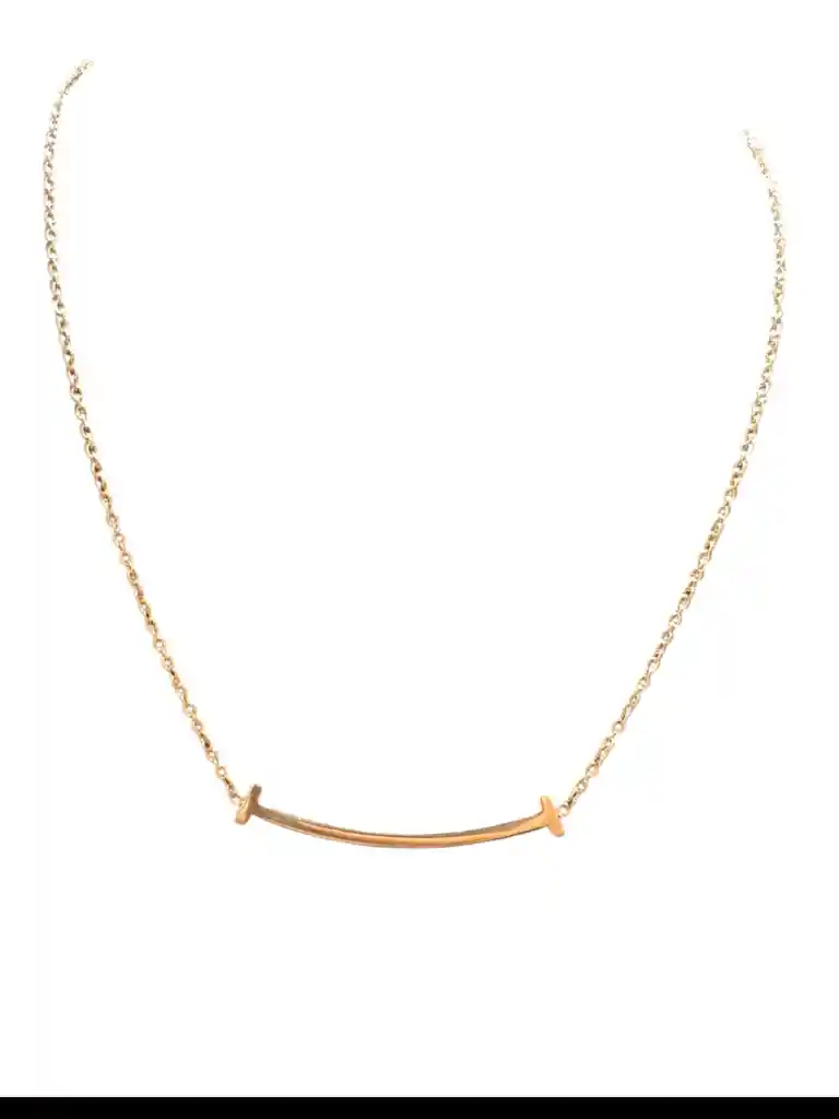 Collar de cadena en color oro rosa con barra curva de diseño minimalista, de líneas limpias y proporciones equilibradas. Su acabado pulido realza el brillo suave y sofisticado del metal, aportando un estilo moderno y atemporal. Ideal para usar solo o en capas, es una pieza versátil que complementa tanto looks diarios como combinaciones más elegantes con un toque discreto y refinado.