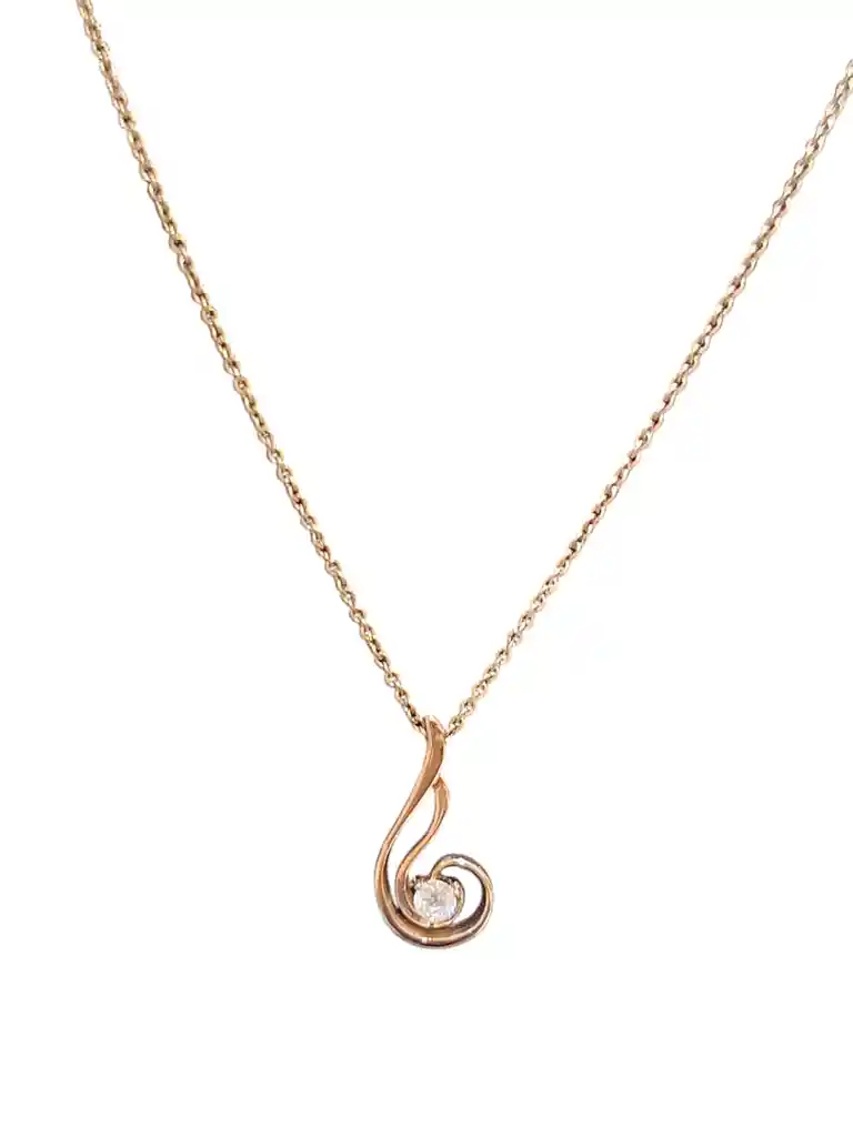 Collar delicado de diseño curvo y elegante, con colgante en forma de espiral fluida que envuelve un cristal brillante central. Su acabado pulido realza el brillo y le da un toque sofisticado y femenino, ideal para usar a diario o para ocasiones especiales. Una pieza sutil que aporta luz y elegancia a cualquier look.
