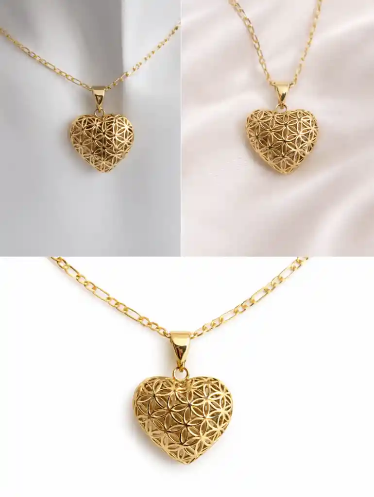 Collar corazón tejido laminado en 14k dorado mide 50cm