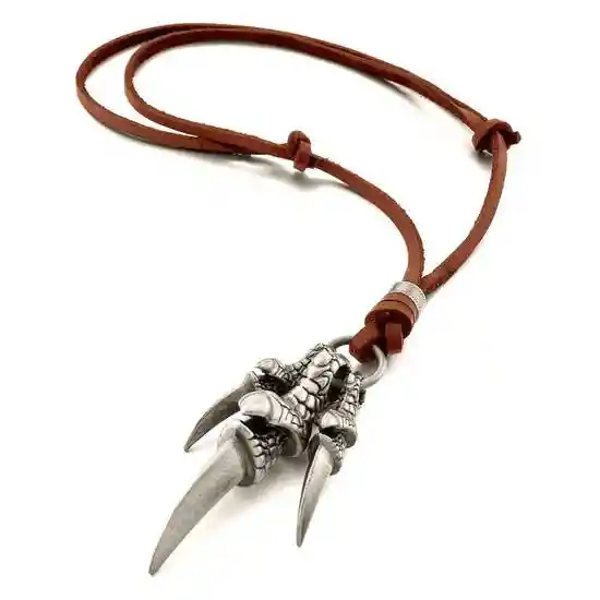 Dije en Forma de Garras de Dragón. Collar Estilo Vintage. Nudo Deslizable Para Ajustar el Largo Del Collar. Especificaciones: Tamaño Dije: 45 cm 65 cm. Largo: 25 45 cm. Color: Plateado. Material: Cuero Pu Metal. Ajustable Dije: 45 cm 65 cm.