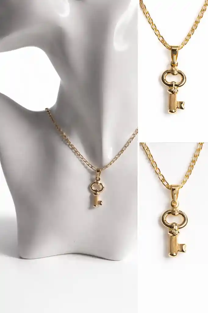 Collar con dije de llave laminado en oro de 14k mide 50cm y el dije 2 cm