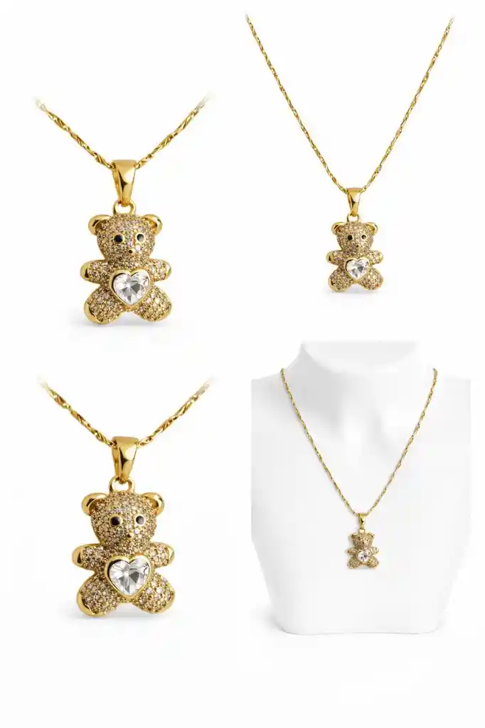 Collar con tierno y elegante oso laminado en oro de 14 k mide 45cm y el oso 2 cm.