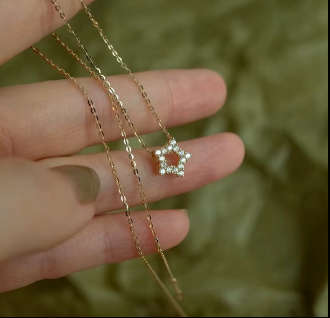 COLLAR DE PLATA BAÑADO EN ORO ESTRELLA BRILLANTE