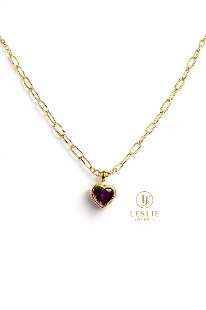 Collar elegante con eslabones de moda y punto de luz en forma de corazón de cristal morado laminado en oro de 18k mide 45cm.