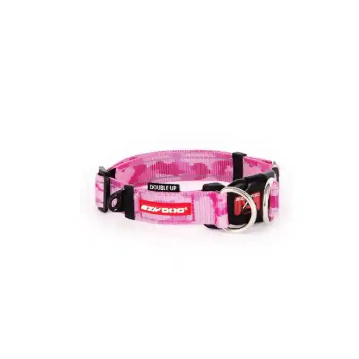 EzyDog Collar Doble solo engancha la correa a ambas Argollas-D en acero inoxidable para mayor seguridad y tranquilidad. Para la fabricación de este collar se han utilizado Argollas-D en acero inoxidable y materiales de la más alta calidad para asegurar que sea cómodo y fácil de limpiar. El collar Double Up está confeccionado con nuestro exclusivo tejido Soft Touch que es suave, pero increíblemente fuerte a la vez. Al diseñar este collar, no sólo tuvimos en mente la durabilidad, sino también la comodidad de tu perro. Características Principales Dos Argollas-D en acero inoxidable para enganchar la correa. Confeccionada con nuestro tejido patentado Soft Touch™. La doble Argolla-D elimina la presión de la hebilla. Costuras reflectivas para seguridad nocturna. Accesorio separado para colgar de forma segura la placa de identificación. Tallas y Medidas Small: 22-29 cm Ancho tejido: 1.2 Medium: 29-40 cm Ancho tejido: 1.9 Large: 39-59 cm Ancho tejido: 2.5