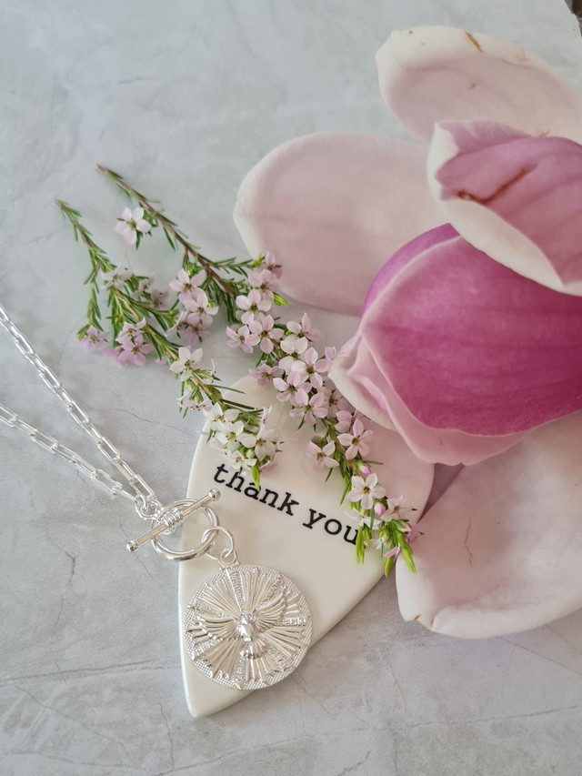 Collar con medallón de Espíritu Santo XL bañado en Plata. Broche delantero
