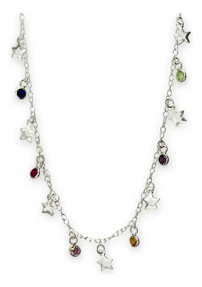 Collar Estrellas Caladas Circon Colores Plata Ley 925 + Caja