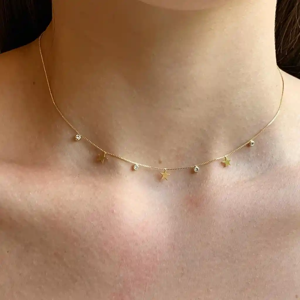 Collar enchapado en oro de 18 kilates 6 micras de oro Libre de níquel y plomo (hipoalergénico) 42 cm + 5 cm de alargue.