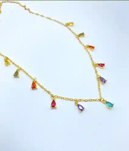 Collar Gotas Colores Circones Plata S925 Baño Oro +caja Dorado