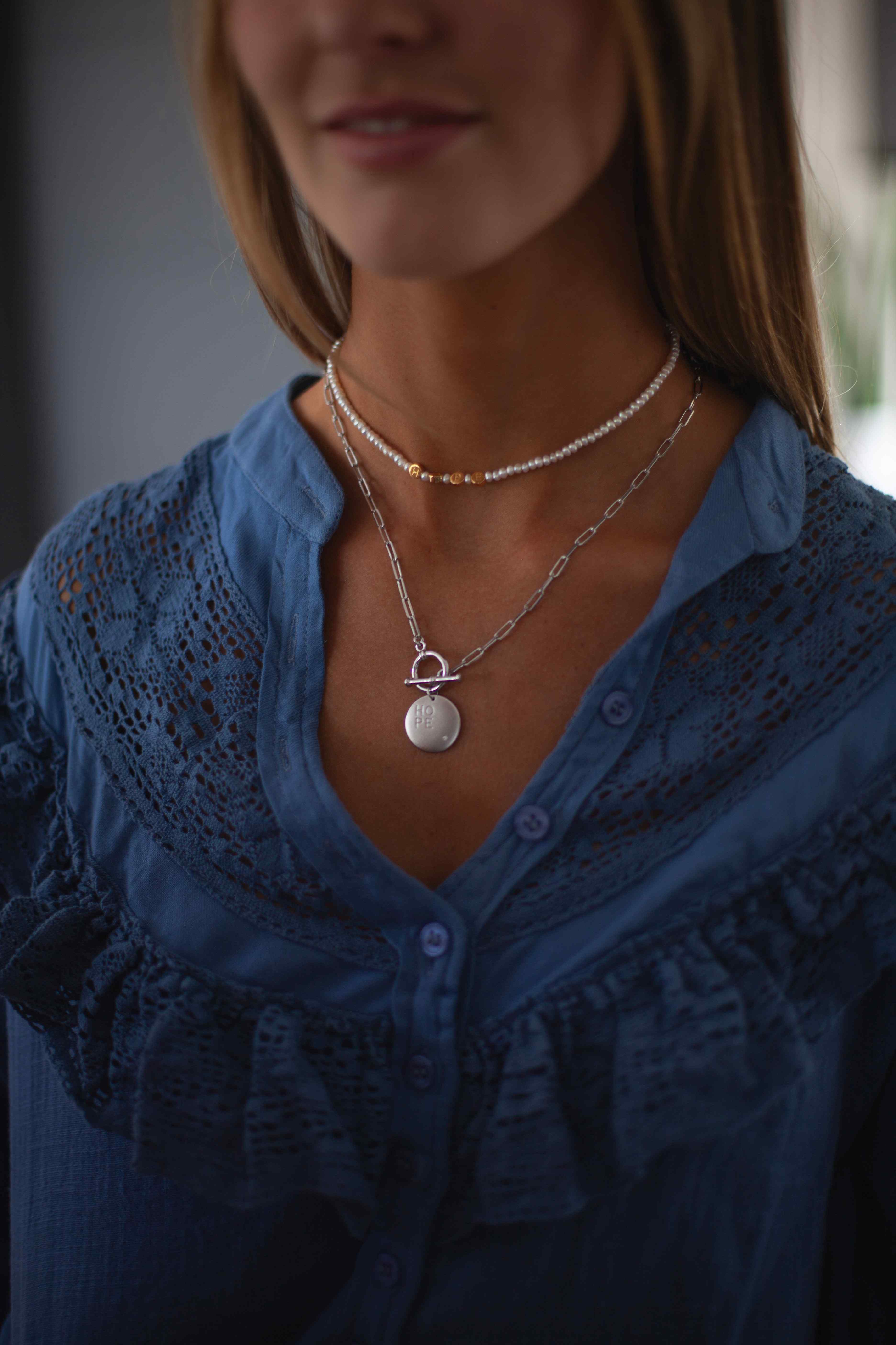 <p><span>Lleva</span><span> </span><span>un pedacito de</span><span> esperanza a todas partes contigo con el collar Hope en su versión original. </span><span>Es también el regalo perfecto para quien necesita esa esperanza </span><span>y paz en su vida.</span></p><p><strong>Medidas:<span> </span></strong>Cadena 45cm / Colgante 2cm diametro</p><p><strong>Materialidad:<span> </span></strong>Colgante de plata</p><p><strong>Color:<span> </span></strong>Silver</p><blockquote><p><span style="color: #80a57f;">I HOPE</span></p><p style="text-align: left;"><em>“iHope”, </em><em>fue creada para llevar la esperanza a todas partes y contagiarla a quienes<span> </span>también necesitan un pedacito de ella.</em></p><p style="text-align: left;"><em>Nuestra creadora, Juanita Lira quien descansa en paz, luego de haber sido diagnosticada cáncer de mama a sus 22 años, vivió momentos de incertidumbre y miedo, pero gracias al apoyo de su familia, amigos, cercanos y la motivación de salir adelante, pudo vivir con un propósito que le llenó el alma, feliz y esperanzada.</em></p><p style="text-align: left;"><em>Estaba enamorada de este proyecto “iHope” y espero que todos los pedacitos de esperanza puedan llegar a muchas personas. Quizás no podemos cambiar</em><br><em>esas adversidades o circunstancias difíciles que nos presenta la vida, pero si</em><br><em>podemos cambiar la actitud con que las enfrentamos y las vivimos.<br><br>Debes considerar que el cuidado de tu pedacito de esperanza es clave, evita bañarlo, perfume e intenta sacártelo para hacer deporte y dormir.</em></p></blockquote>