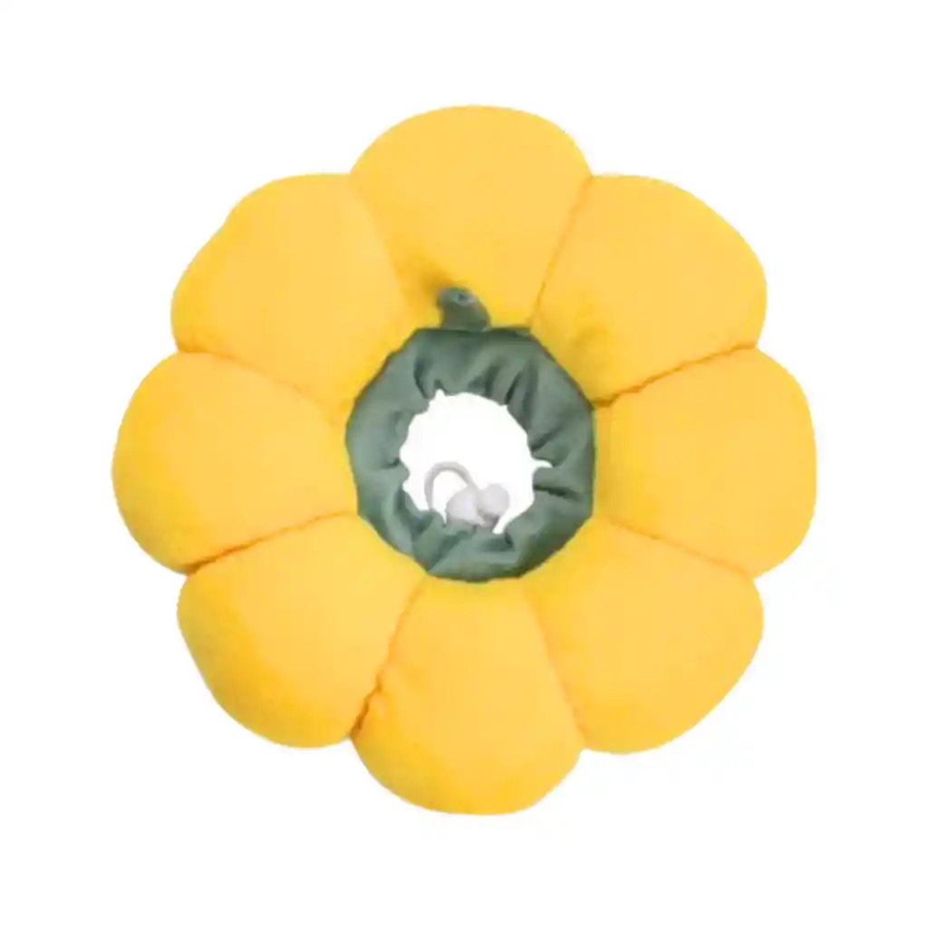 Descripción: Collar Isabelino en forma de girasol para mascotas. diseñado para ser más cómodo que los conos tradicionales. Propósito: Evita que las mascotas se laman, rasquen o muerdan heridas, suturas o irritaciones en su cuerpo, especialmente después de una cirugía. Diseño: Acolchado y con forma de girasol, lo que lo hace una alternativa más suave y estéticamente agradable a los conos de plástico rígido. El anillo exterior del collar está elaborado de algodón y poliéster agradable para la piel. El peso de este collar de recuperación es lo suficientemente ligero como para que su mascota no se dé cuenta lo que lleva puesto. Tamaño: Estirable, equipado con un cordón ajustable al cuello de la mascota. Talla S Diámetro Collar: 20 cm Rango Circunferencia Cuello: 10 - 23 cm Color: Amarillo/Verde