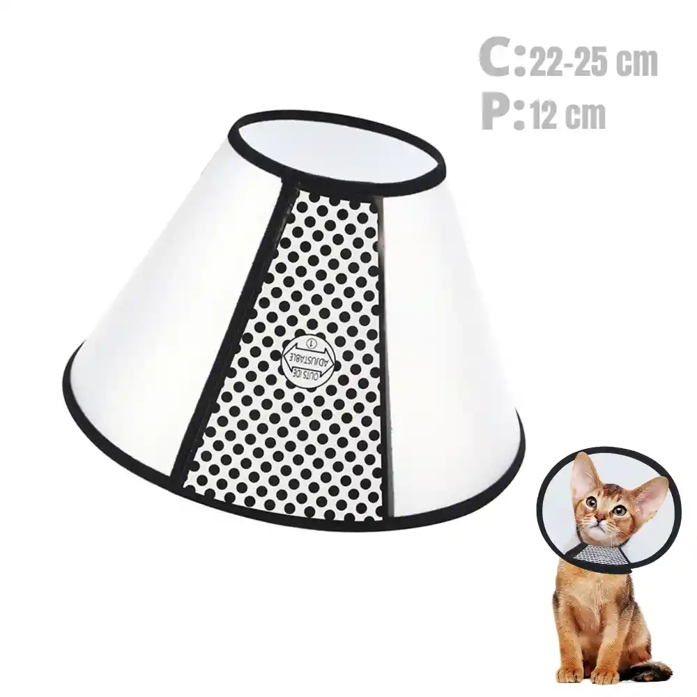 Ayuda a las mascotas a recuperarse de lesiones, erupciones, cirugía entre otros. . Evita que tu mascota arañe la herida o la parte afectada durante el descanso. . Translúcido, ligero, lavable, antiarañazos y antimordida . Material suave en el borde interior y exterior, para mayor comodidad y protección . Conveniente para ajustar el tamaño de la apertura un poco con Velcro para una mejor comodidad. Especificaciones: . Marca: Buen Amigo. . Material: Plástico. . Profundidad: 12 cm . Cuello de 22 a 25 cm . Contenido: 1 Collar Isabelino.