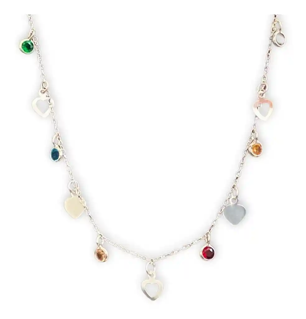 Collar Juvenil Corazones Circones Colgantes Plata 925 Mas Caja