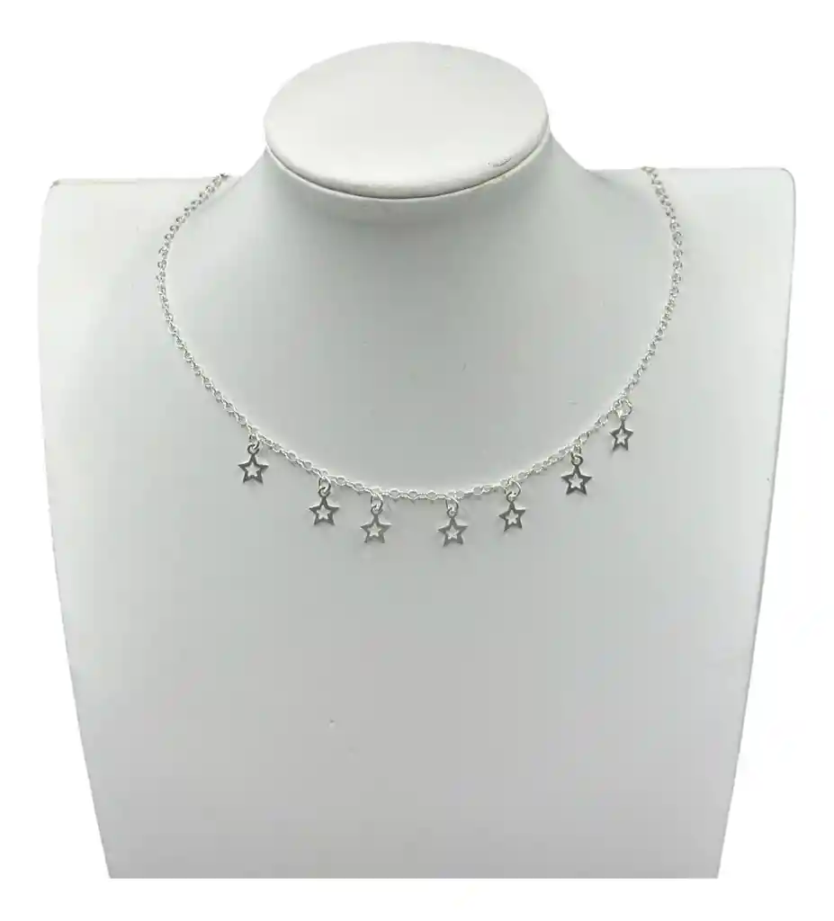 Collar Juvenil Estrellas Caladas Plata Italiana 925 Mas Caja Regalo
