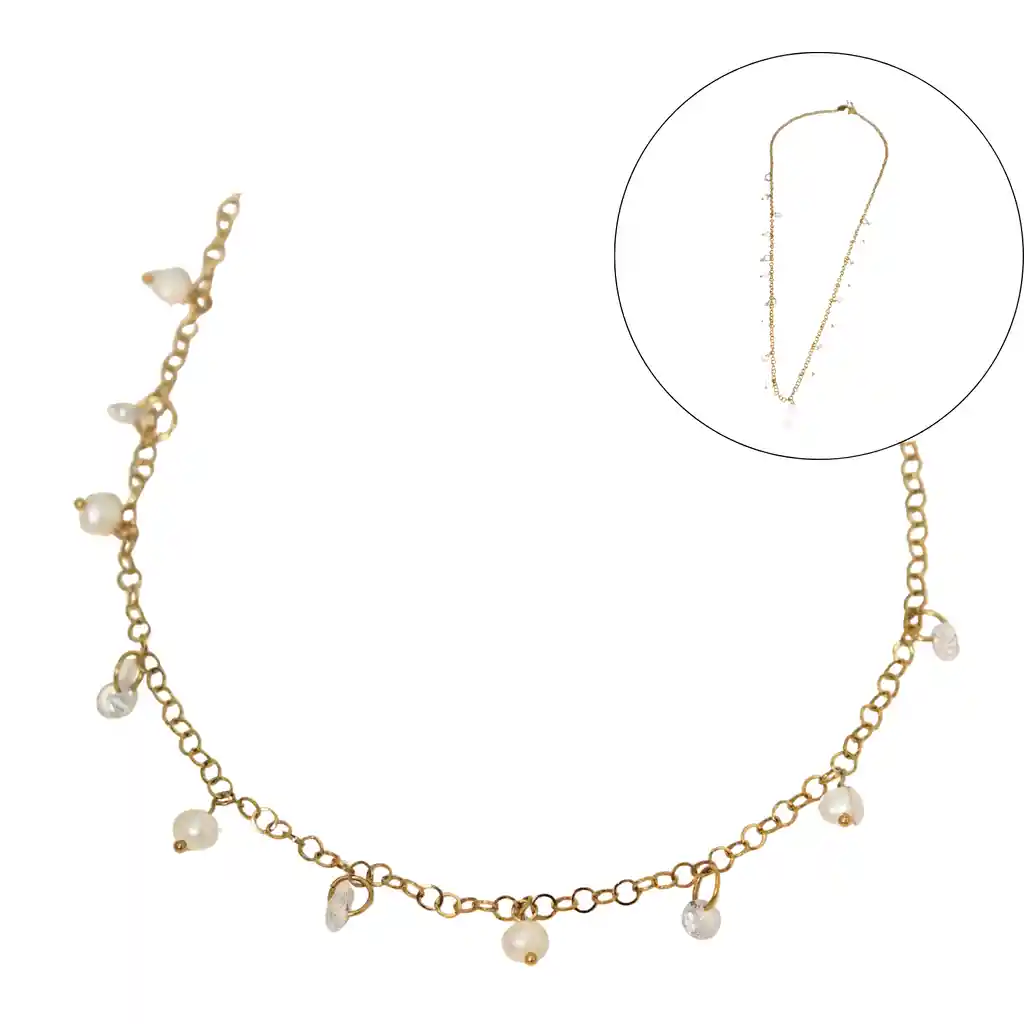 Su nombre viene del origen mismo del mar. Talasa, la madre de las aguas en la mitología griega, representa el fluir constante, la calma y la fuerza silenciosa de lo natural. Este collar largo ajustable de la colección Riviere rinde homenaje a esa energía que todo lo conecta, combinando la delicadeza de las perlas de río naturales con el brillo sutil de las zirconias. El resultado es una joya versátil, luminosa y elegante, capaz de adaptarse a cualquier estilo o momento. ✨ Su diseño de cadena de eslabones chapada en oro 18K, con largo ajustable de hasta 80 cm, permite llevarlo de múltiples formas: largo y fluido, en doble vuelta tipo gargantilla o con un toque de caída en el escote. Cada perla y zirconia se disponen con movimiento, evocando las gotas de un río que fluyen sobre la piel con suavidad y armonía. 💎 Características principales 🌿 Material: cadena de eslabones chapada en oro 18K. 🌊 Piedras: perlas de río naturales y zirconias facetadas. 💫 Medidas: largo ajustable hasta 80 cm · ancho de eslabones 4 mm. ✨ Diseño versátil: puede usarse como collar largo o doble gargantilla. ⚖️ Ligero y brillante: cómodo, elegante y con movimiento natural. 💎 Hecho a mano: cada pieza presenta ligeras variaciones en sus perlas, lo que la hace única. Inspiración Riviere El collar Talasa captura la esencia del mar: movimiento, profundidad y luz. Es una joya que fluye contigo, adaptándose a cada ocasión y reflejando esa mezcla perfecta entre sofisticación y naturalidad. Ideal para quienes buscan una pieza versátil que combine la belleza orgánica de las perlas con el reflejo cristalino de las zirconias. 🌾 🎁 Presentación con alma Como toda la colección Riviere, el Collar Talasa se entrega en una hermosa presentación para regalo, lista para sorprender con un gesto elegante y significativo. ✨ Talasa: la esencia del mar transformada en joya. 👉 Agrega al carrito ahora y deja que la serenidad del agua fluya contigo dondequiera que vayas.