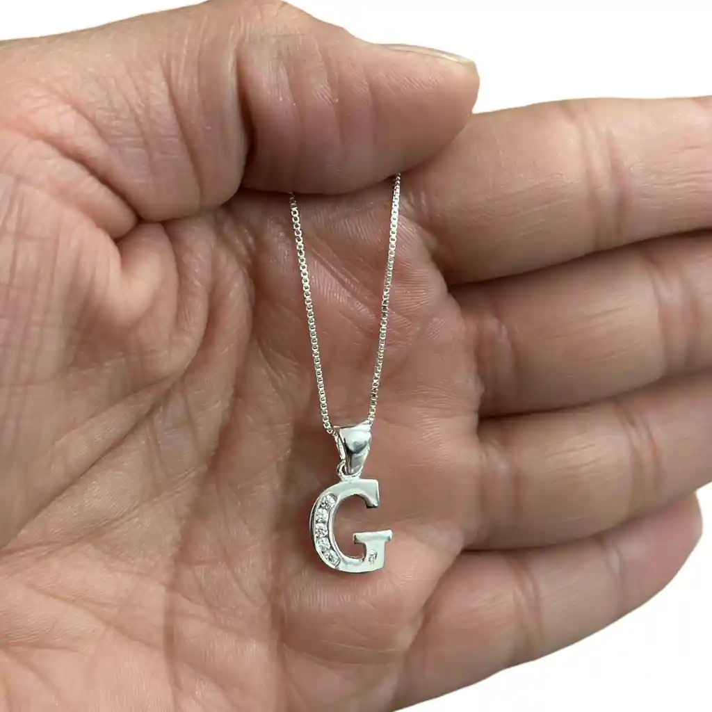 Collar Letra G Circones Juvenil Plata Italiana 925 +caja