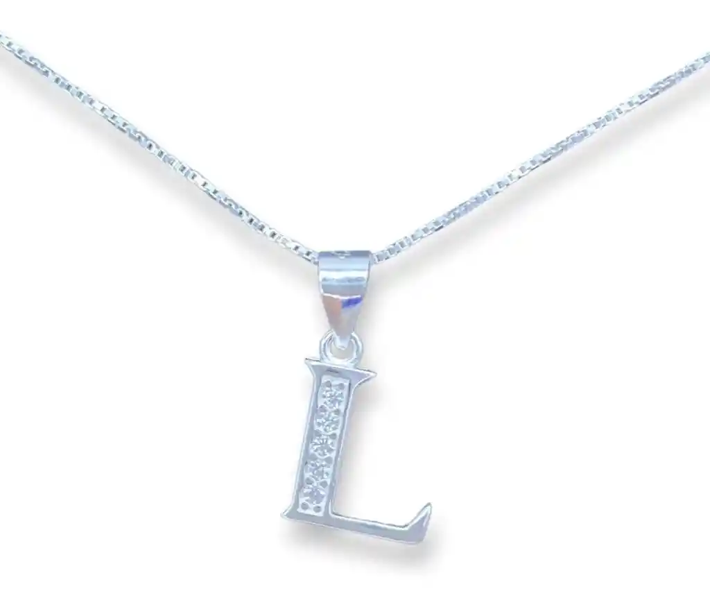 Collar Letra L Circones Plata Italiana 925 Mas Caja De Regalo