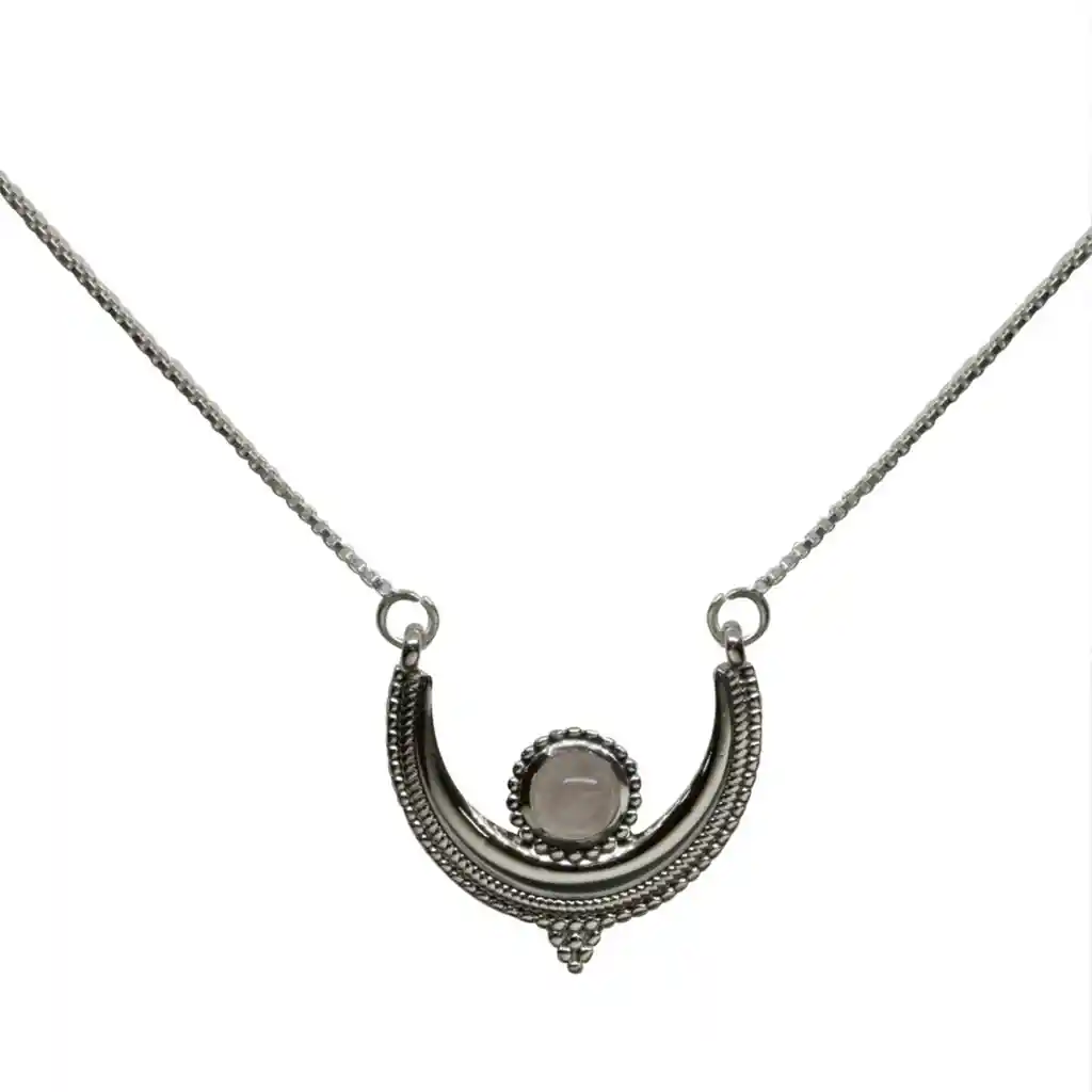 Peso 5,06grs. aprox. Tamaño 43cm + 3cm. de alargue. CUARZO ROSA Y PLATA 925