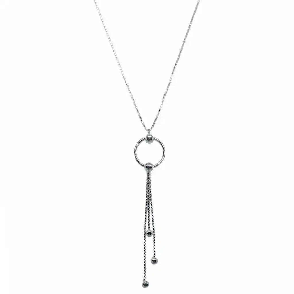 Embellece tu cuello con nuestro exquisito Collar de Plata Fina 925, una joya que fusiona la elegancia atemporal con la versatilidad moderna. La cadena veneciana de plata fina resplandece un brillo duradero creando un collar de estilo como un clásico atemporal. Sus medidas son 45cm de largo de la cadena veneciana. El largo del colgante es de 65mm. El circulo es de 13mm de diámetro. Las bolitas son de 3m de diámetro. Tiene un peso de 3 gr.
