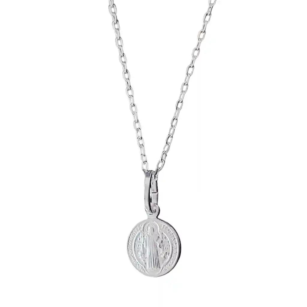 Experimenta la protección y la elegancia con nuestro Collar Medalla de San Benito en auténtica Plata Fina 925. Cada detalle de esta medalla ha sido meticulosamente elaborado para reflejar la espiritualidad y el simbolismo de San Benito. Sus medidas son 45cm de la cadena. La medalla 17mm de Largo incluyendo el valier y 9mm de Ancho. Tiene un peso de 2 gr.