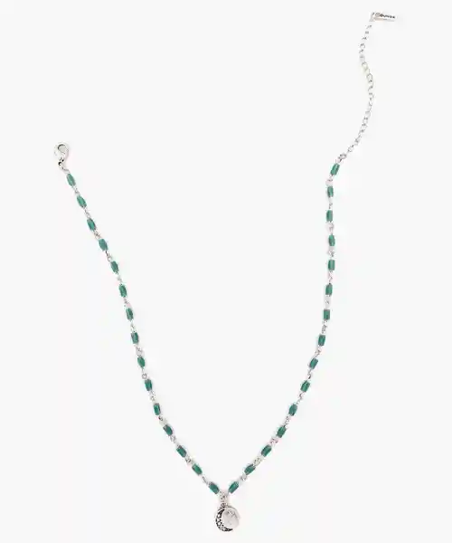 Collar Corto de Mostacillas y Moneda Con Detalle Media Luna.