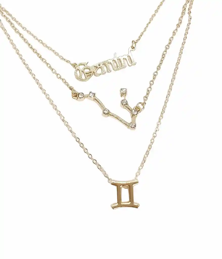 Collar Multicapa 3 En 1 Colgantes Zodiaco Constelaciones Geminis