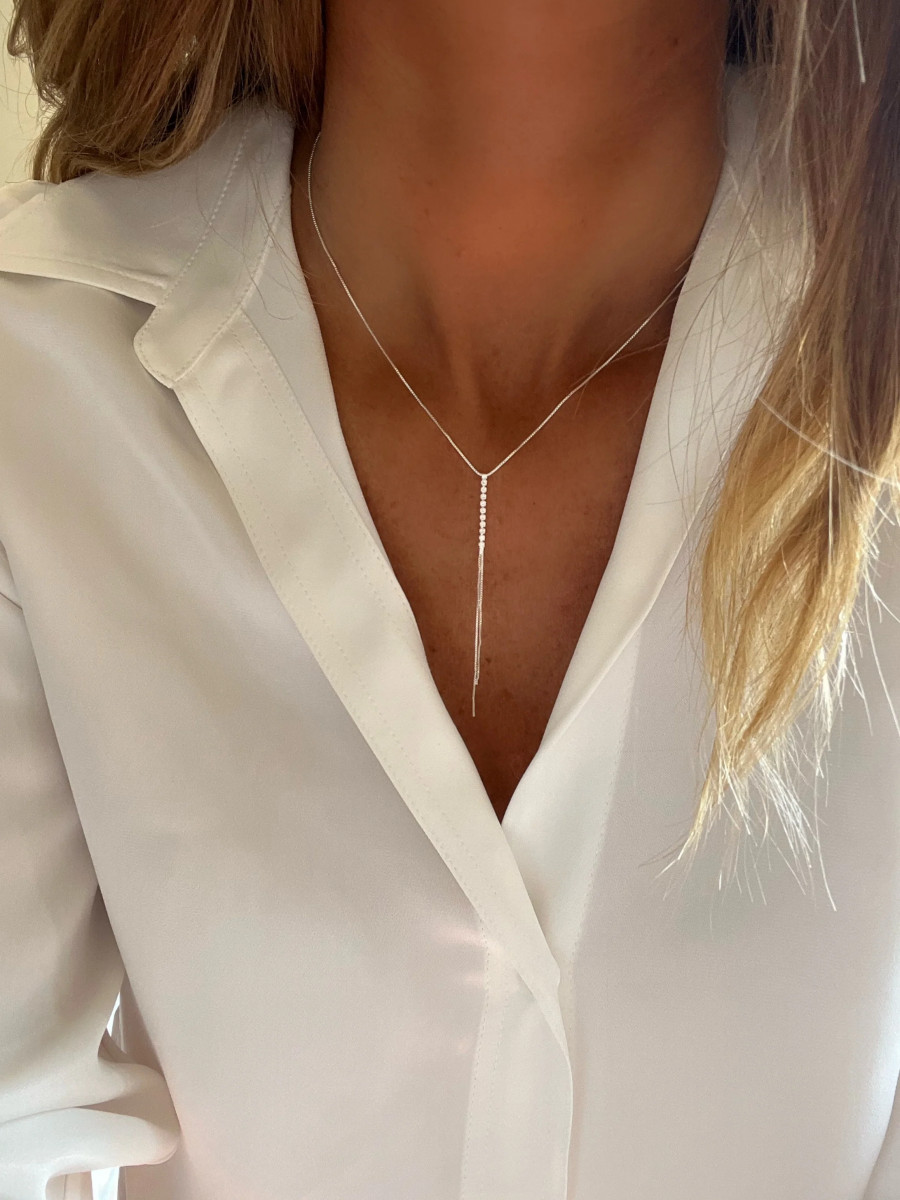 Delicadez, simpleza y elegancia son las palabras para describir este precioso collar. El Collar Noa en cascada tiene palito de 20x1.8 mm con circones incrustados, mide 40 cm con alargue a 50 cm.Material; bronce enchapado en oro 18 kilates o en plata 925, libre de níquel e hipoalergénico.p