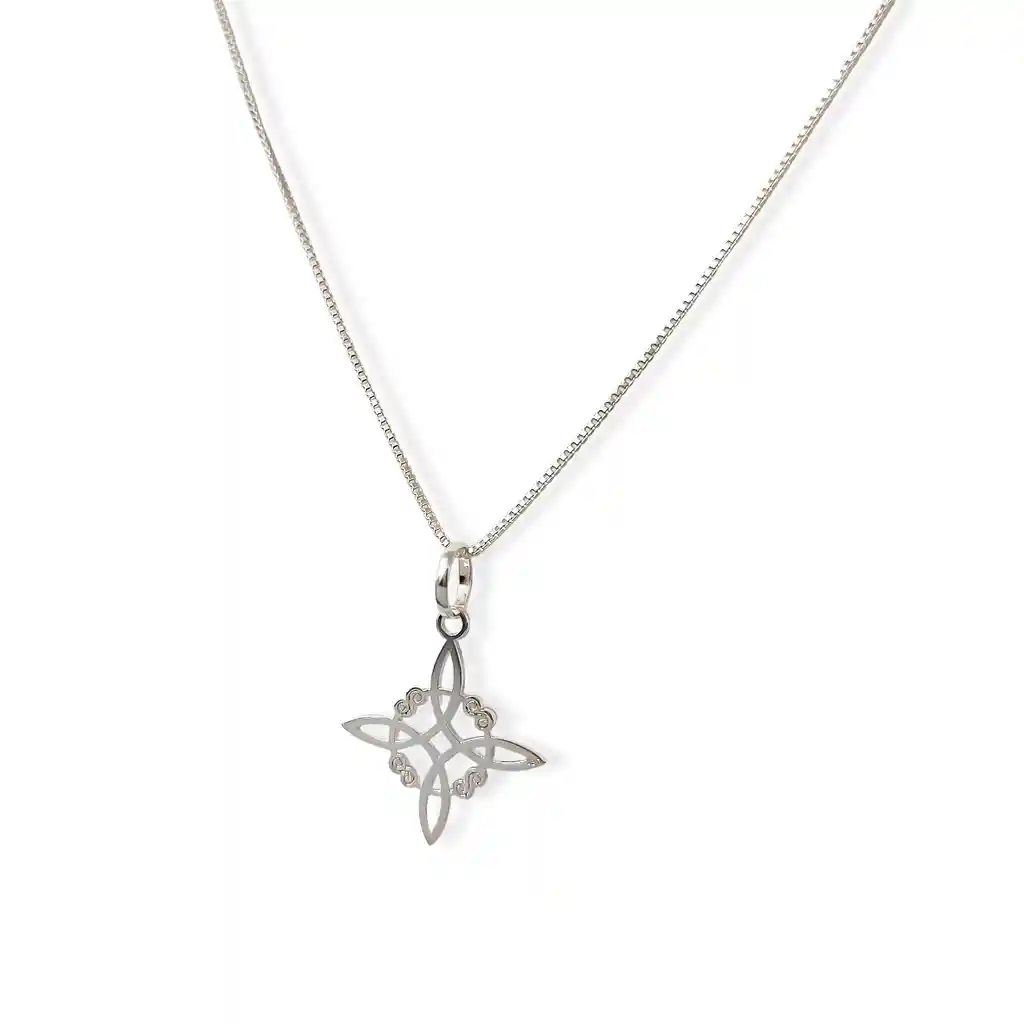 Un símbolo de protección, energía y conexión espiritual. Este collar con diseño calado de Nudo de Brujas representa la unión de lo sagrado, la fuerza interior y la sabiduría ancestral. Elaborado en Plata Fina 925, es hipoalergénico, duradero y con un acabado brillante que realza cada detalle del diseño. Ideal para quienes buscan un amuleto con significado, estilo y elegancia. Medidas: Largo total 45cm. Largo total colgante incluyendo la argolla 23mm. Tamaño nudo de brujas 16mm. Peso 2 gr.