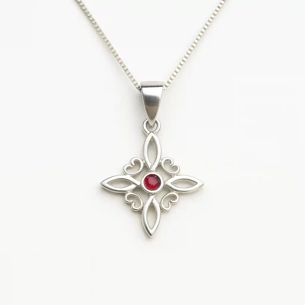 Conecta con tu poder interior con este collar de Plata 925, protagonizado por el Nudo de Brujas, símbolo de protección, energía y equilibrio espiritual. El circón rubí aporta un toque de pasión, fortaleza y vitalidad, creando una joya mística y elegante a la vez. Especificaciones: - Material: Plata ley 925 - Medida cadena: 45cm - Presentación: incluye caja elegante, ideal para regalar. - Estilo: Elegante, casual. Perfecto para quienes buscan significado y estilo en cada detalle.