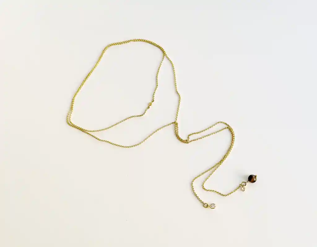 Hermoso y único collar hecho a mano por nosotras, con materiales duraderos, resistentes al desgaste, e hipoalergénicos. Ideal para darle un toque especial a tu look. Características: Materiales: Piedra ojo de gato y circones. Cadena y piezas chapadas en oro 18k libres de níquel. Medida del collar: 120 cm