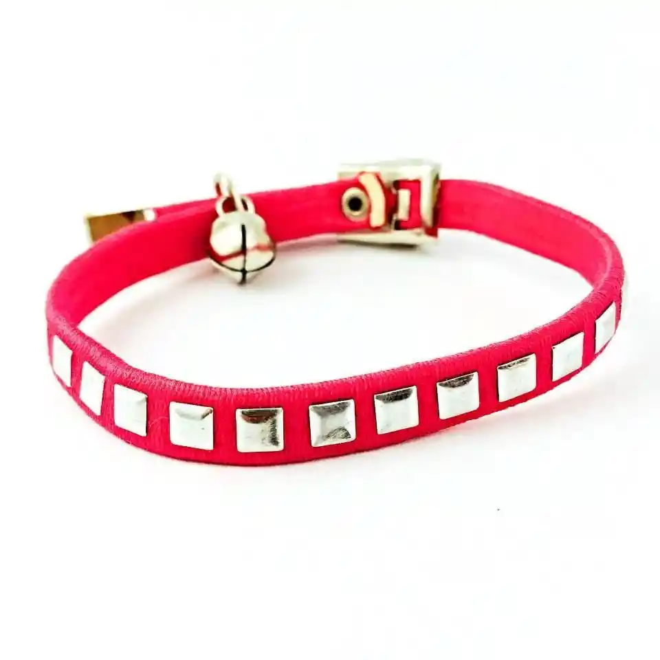 Collar ajustable para gatos, estilo tacha pirámide, color rojo Para cuellos de 17 a 24 cm