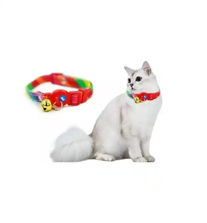Hey! COLLAR PARA GATOS ARCOIRIS Este collar con liberación rápida de Hey! combina comodidad y seguridad para todos los gatitos. Está fabricado con malla de naylon de alta calidad y tiene herrajes de plástico resistente con bordes redondeados que no pinchan, una anilla metálica para la placa de identificación y una hebilla de liberación rápida. Se engancha fácilmente y se mantiene seguro, pero se quita rápidamente si se tira del collar. Los gatos pueden explorar con confianza gracias a este mecanismo de seguridad para gatitos, ya que permite que el collar se suelte si se engancha en una rama, mueble u otro peligro. Medidas: 31,5 largo total x 1 cm de ancho