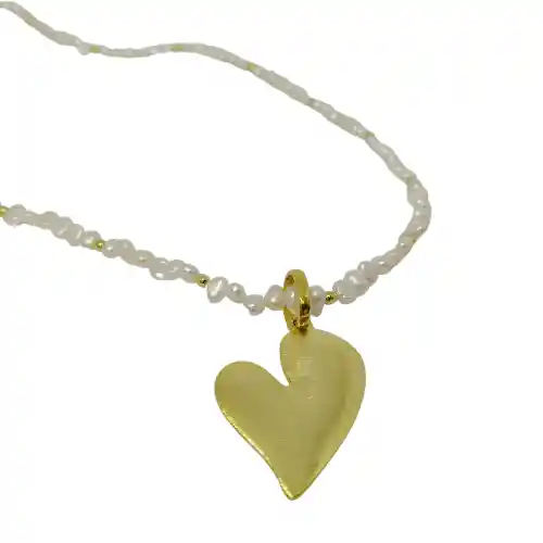 Collar hecho en baño de oro con perlas de río de 50 cms. Dimensiones del colgante: 3,5 x 2,5 aprox.