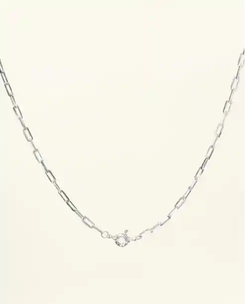 Los collares son joyas que siempre están a la vanguardia y son diseñadas para darle un toque especial a tus looks diarios; puedes combinarlos como quieras.</p> <p><span>Si quieres armar tu Mix & Match (look por capas) soñado solo escríbenos... </span><strong>¡Estamos felices de ayudarte!</strong></p> <p><strong><u>Características:</u></strong><strong> </strong></p> <p><strong>Material:</strong> Bronce enchapado en Plata 925. Libre de níquel.</p> <p><strong>Medida de la cadena:<span> </span></strong>45cm.</p> <p><strong>Medida del timón: </strong>1cm.</p>